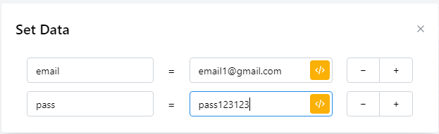 Ví dụ khi bạn muốn lưu email và password lên server thì bạn có thể nhập như sau: