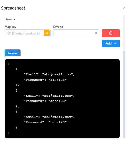&#x20;          \[0]\[“Email”]  : Thì kết quả sẽ lấy được giá trị email là <abc@gmail.com>