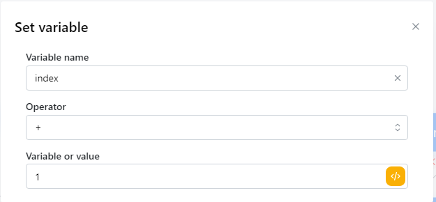 Với trường hợp này ta sẽ tạo một biến ${index} có giá trị là 1.&#x20;