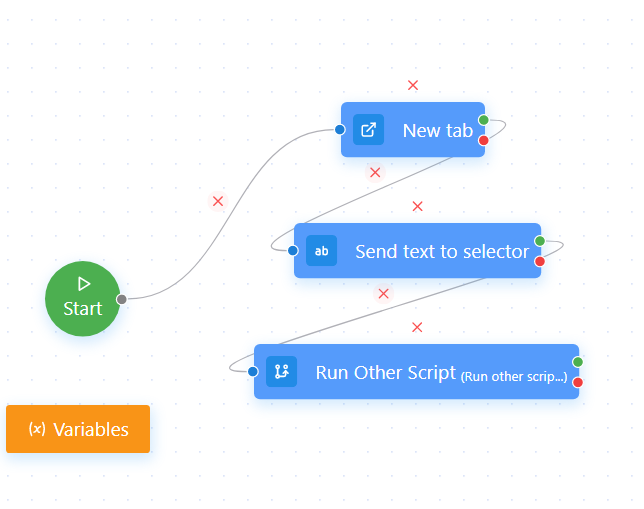 Khi sử dụng node Run other script, bạn có thể chạy một script có sẵn khác vào script bạn đang chạy. Script con có thể sử dụng biến của script cha.