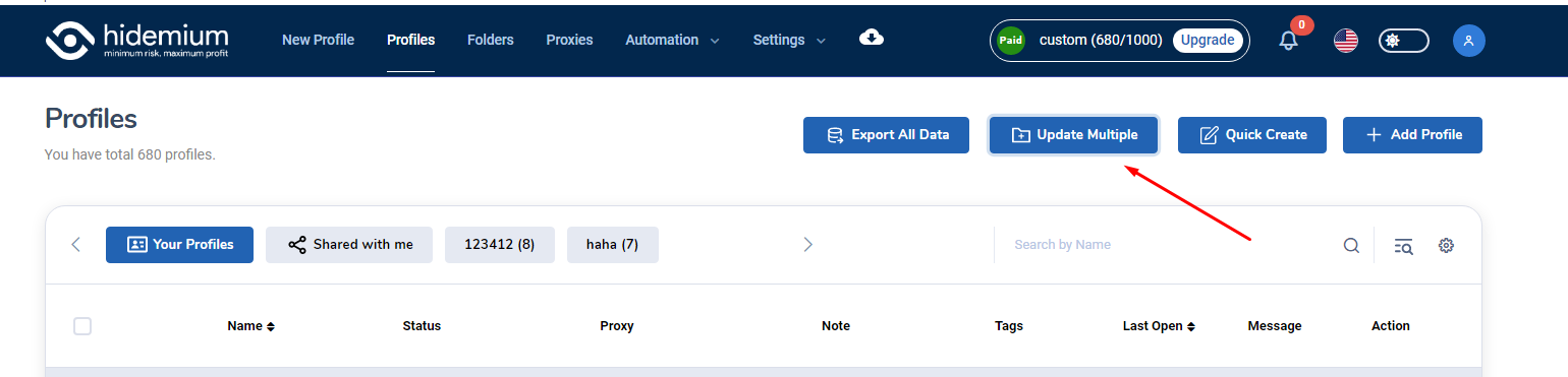 Sau khi update thành công thì tất cả profile và các profile trong folder mà bạn chọn toàn bộ sẽ được update.