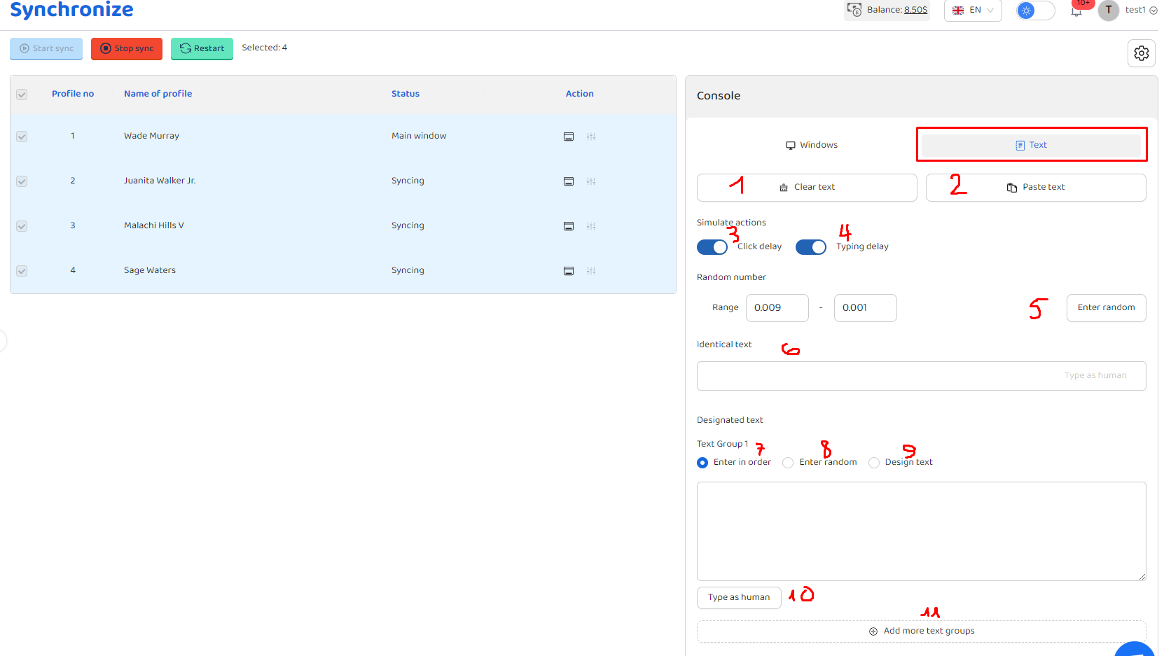 Enter in order: Nhập lần lượt text vào profile, mỗi dòng 1 profile