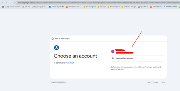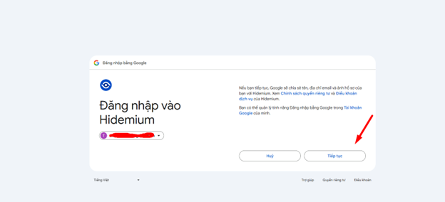 Bước 5: Bạn cần chọn quyền mà Hidemium có thể truy cập, sau khi chọn xong click vào Tiếp tục