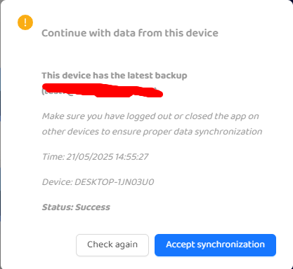 Nếu bạn thấy thời gian sao lưu không đúng hoặc không phải thiết bị gần nhất bạn dùng, đừng vội nhấn “Accept synchronization” (Chấp nhận đồng bộ).