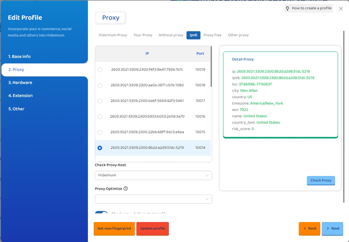 - Khi bấm nút này, hệ thống sẽ tạo ra một IP andress mới thay thế cho IP andress đang dùng, giúp làm mới khi chạy profile.