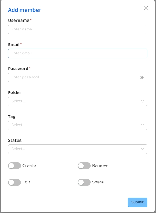 Bước 2: Popup Add member hiện ra, tại đây các bạn cần nhập: