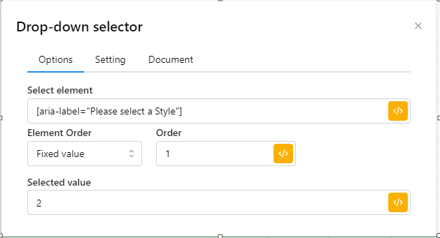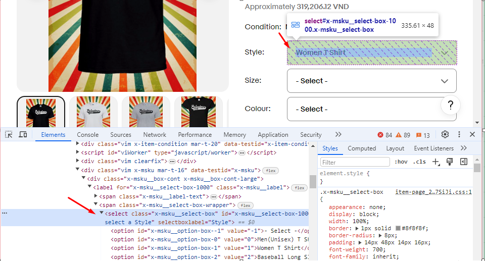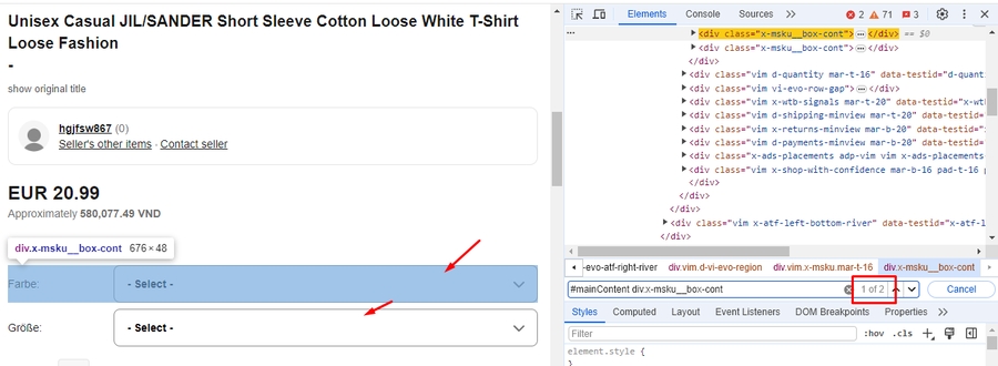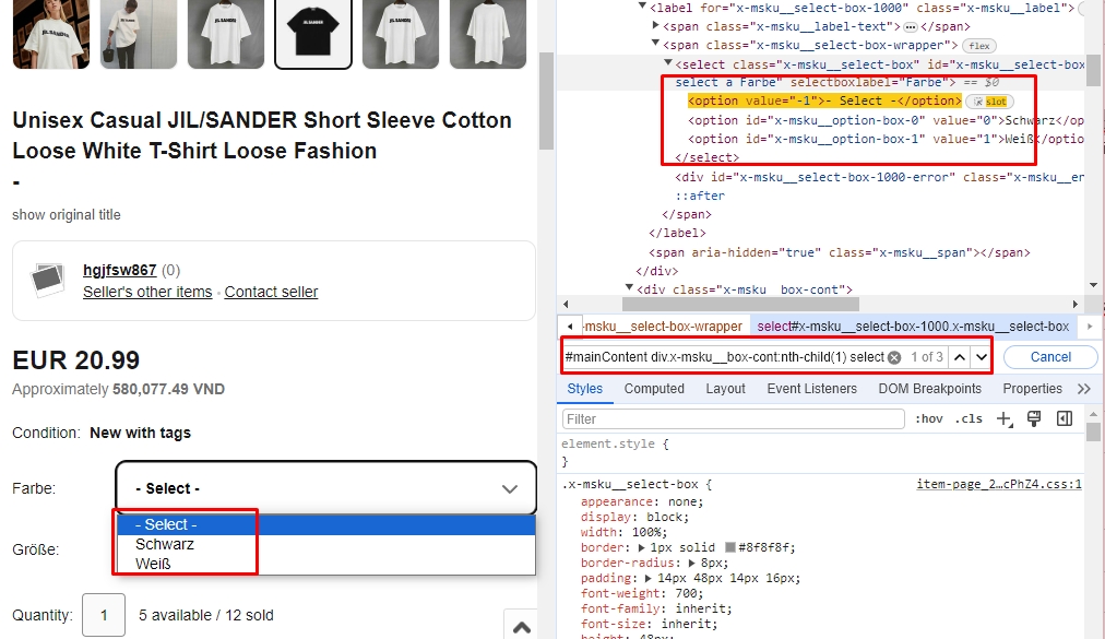 2. Use case là ebayNếu như element của các option này là thẻ Select như ảnh dưới đây và có thuộc tính Value thì lúc này ta mới dùng node DROPDOWN SELECTOR