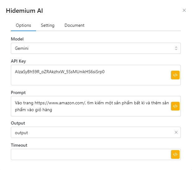 Để việc viết script trở nên đơn giản hơn thì các bạn có thể sử dụng node Hidemium AI