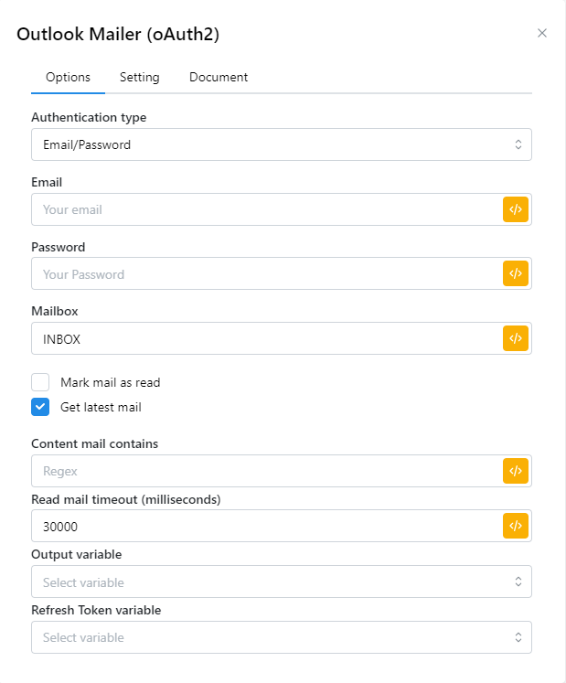 Refresh token variable: Lưu Refresh token vào biến và nếu bạn muốn đọc mail này lần nữa thì chỉ cần nhập lại refresh token này vào node mà không cần nhập email/pass nữa.