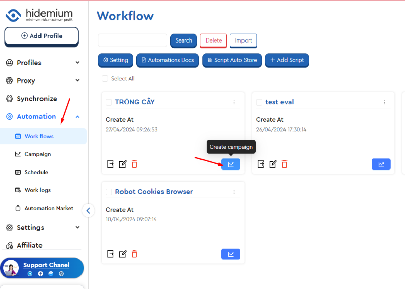 Hidemium mới cập nhật thêm 1 số tính năng để việc tạo campaign của mọi người trở lên linh động và dễ dàng hơn :