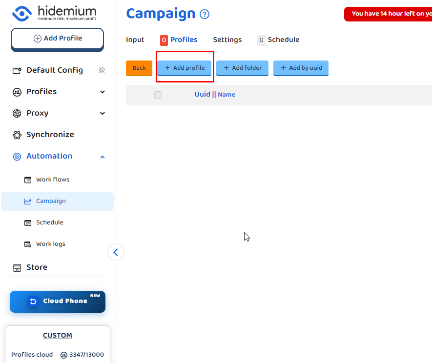 profiles: Profile là phần chọn profile để chạy, tại đây có các option như chọn lần lượt profile hoặc chọn folder, hoặc chạy với 1 danh sách UUID.