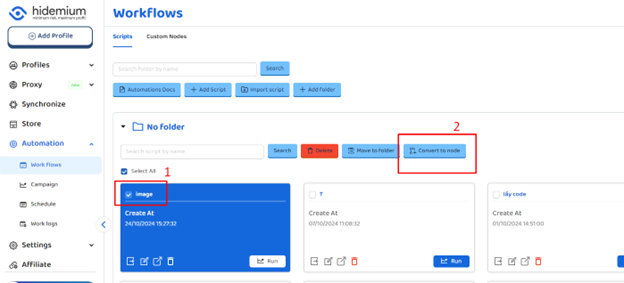 Bước 1: Chọn 1 script để update custom node -> Chọn button Convert to node.