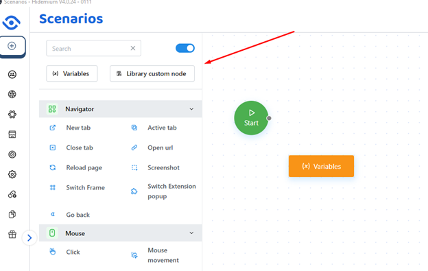 Bước 1: Tại màn tạo Script, các custom node sẽ hiển thị tại Library custom node