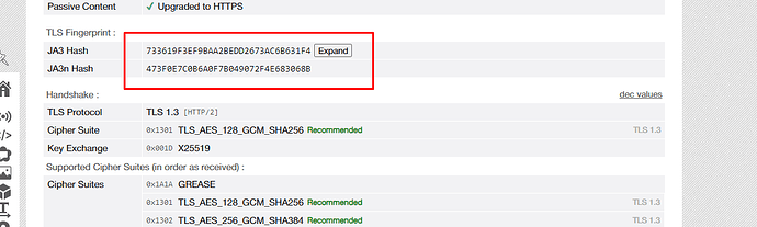 Ta hiểu đơn giản rằng tín hiệu thông tin ở tầng web được gửi nhận 2 đầu sẽ có cơ chế mã hoá thông tin. Và việc gửi nhận thông tin này nếu dùng khác cơ chế Cer, OS, phiên bản trình duyệt, lõi trình duyệt sẽ đưa ra mã băm khác nhau. Chúng ta có thể check tại: SSL/TLS Client Test – TLS Fingerprinting – BrowserLeaks