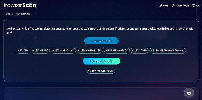 Nếu bạn là người dùng thường xuyên sử dụng VPS nuôi tài khoản, tôi khuyên bạn nên sử dụng tool Scan Port, hoặc truy cập browserscan để sử dụng chức năng check fingerprint và Scan Port để kiểm tra xem VPS của chúng ta đang leak những Port nào