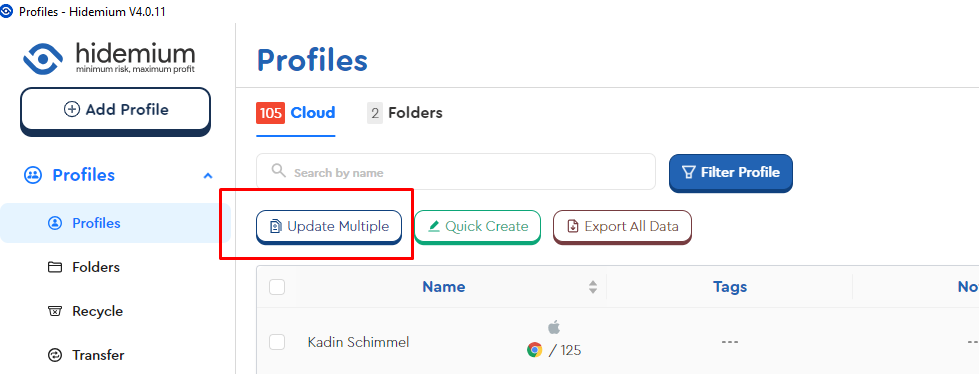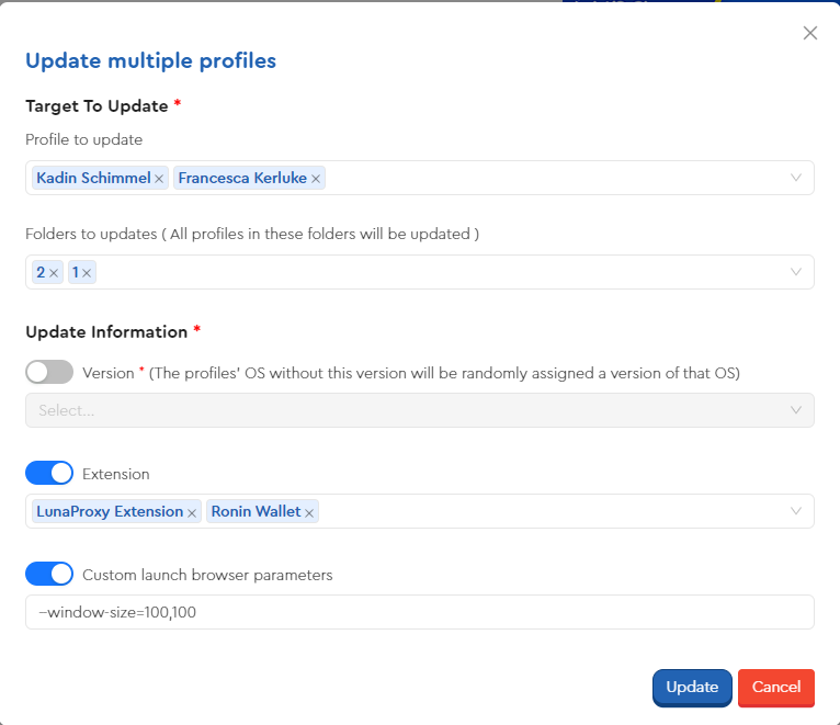 此部分允许您同时更新多个资料的扩展和自定义启动浏览器参数。