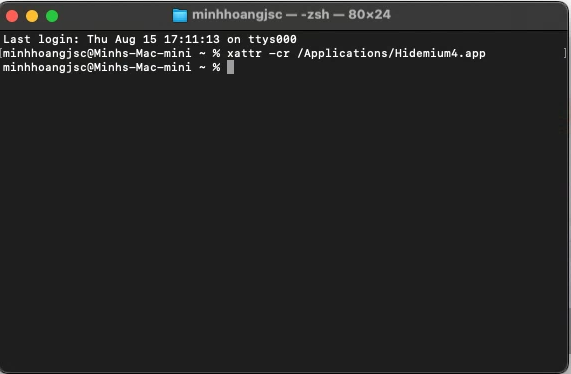 B3: Sau khi hoàn thành xong bước 2, bạn đừng vội mở app. Bạn mở Terminal, Copy và dán dòng lệnh sau vào**Terminal** nhấn **Enter:**