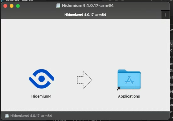 B2: Mở file .dmg và kéo biểu tượng Hidemium4 vào thư mục “Applications”