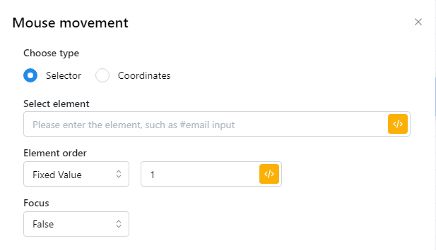 输入要悬停的元素的 CSS 选择器,例如 #email、#global-enhancements-search-query