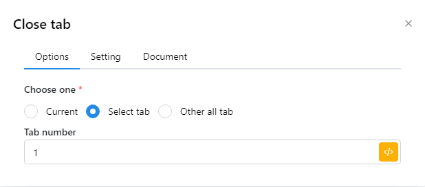 | Select tab    | 选择要关闭的标签页。输入要关闭的标签页号或选择包含标签页编号的变量。 |
