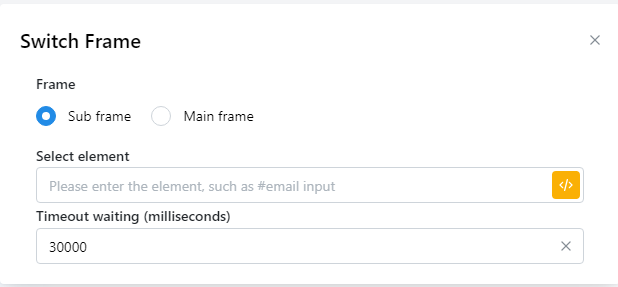 | Sub frame: Select element | 输入框架的CSS选择器，即可对框架中的元素执行操作。              |